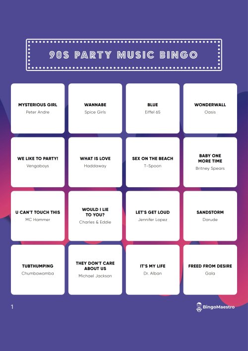 Hit rewind and relive the 90s! This Music Bingo is packed with the ultimate throwback hits — from boybands to dance classics. Sing, laugh, and scream BINGO while the nostalgia hits hard. Think you still know all the lyrics? Time to prove it!
