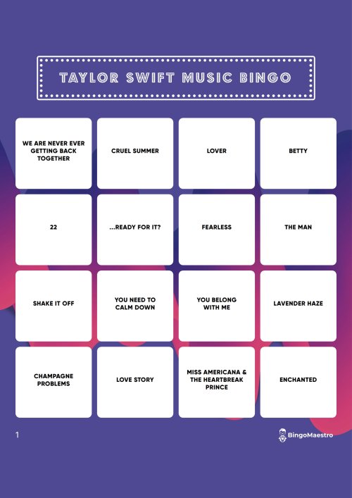 Calling all Swifties! Swiftie or not, this music bingo takes you on a journey through all the hits from Taylor Swift’s iconic Eras Tour! From her country classics like Love Story to pop anthems like Shake It Off and emotional hits like Anti-Hero. Will you win not just BINGO, but also the title of ultimate Swiftie?